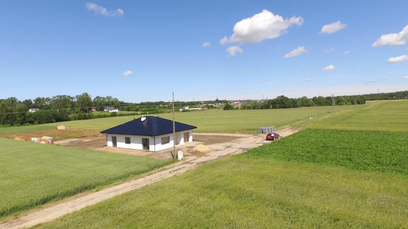 Dom jednorodzinny wolnostojący typu bungalow w stanie deweloperskim o łącznej powierzchni 176,63m², w tym powierzchni użytkowej 117,83m². Położony w miejscowości Kębłowo na działce o powierzchni 750m². Budynek o charakterze parterowym z możliwością wykorzystania poddasza w celach użytkowych. Dom widoczny na zdjęciach został sprzedany i aktualnie trwa budowa identycznego budynku na sąsiadującej działce o powierzchni 700m² z planowanym odbiorem w I kwartale 2018r. W skład parteru wchodzi : wiatrołap (5,81m²), przedpokój (16,13m²), salon z oknem tarasowym (28,67m²), kuchnia (11,74m²), spiżarnia (1,15m²), pokój (16,25m²), pokój (11,84m²), pokój (15,52m²) , łazienka (6,88m²), toaleta (3,84m²), kotłownia (5,38m²) oraz garaż (18,92m²). Dom o konstrukcji murowanej z porothermu. Pokrycie dachu stanowi blacho-dachówka modułowa. Gotowa instalacja sanitarna (wodno-kanalizacyjna) oraz grzewcza. W salonie, kuchni, łazienkach i garażu zastosowano wodne ogrzewanie podłogowe. Dla pozostałych pomieszczeń wyprowadzono przyłącza pod grzejniki panelowe. Duże przeszklenia znakomicie doświetlają wnętrza domu. Posadzki stanowią równe, wypoziomowane wylewki betonowe, na ścianach tynki gipsowe wykończone gładzią i pomalowane na biało. Równa, płaska działka o kształcie kwadratu ogrodzona z trzech stron. Media: woda, energia elektryczna, zbiornik na ścieki, gaz w drodze. W pobliżu powstaną kolejne budynki jednorodzinne. Zapraszamy serdecznie do bezpośredniej prezentacji.